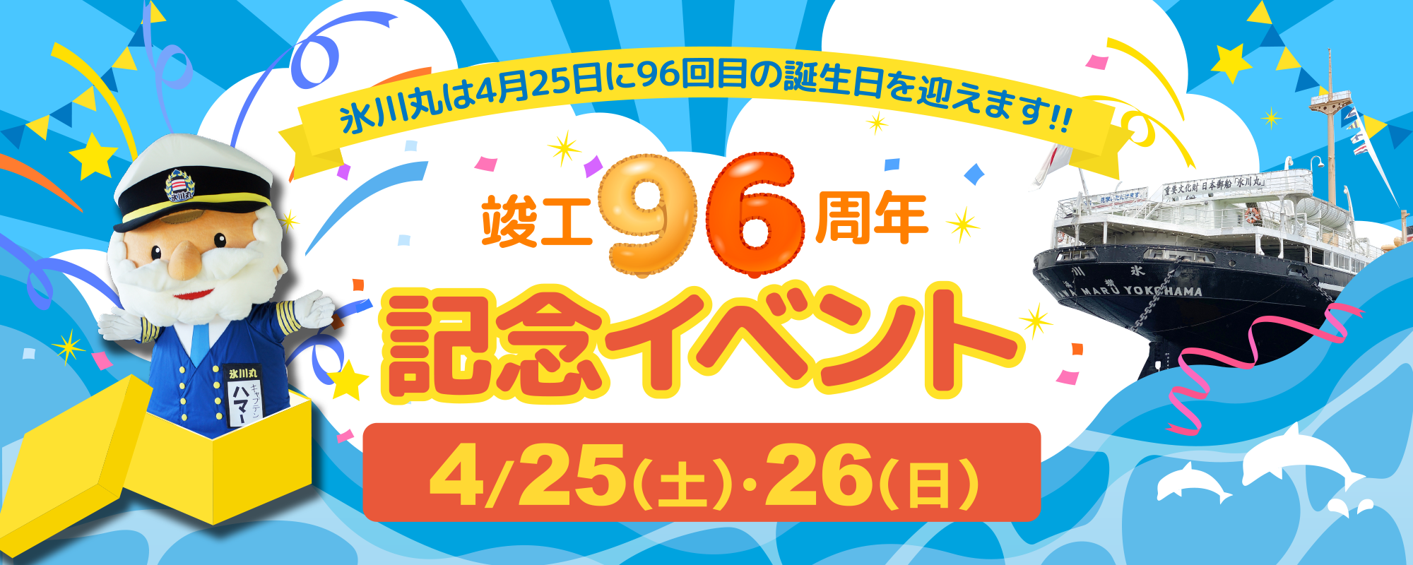 横浜市山下公園で公開されている「氷川丸」は、2026年4月25日(土)に竣工96周年を迎えます。