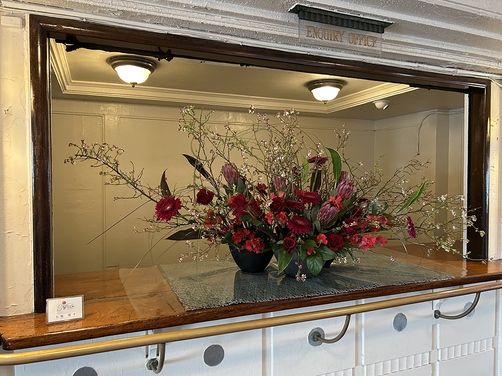 生け花とヨーロッパのフラワーデザインを融合させて作り上げられた「Nスタイル」の作品が船内を彩ります。